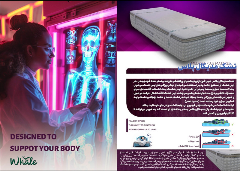 تشک تمام طبی حالت سفت: فوم و پارچههایی که به عنوان روکش برای آن در نظر گرفته شده دارای استانداردهای مشخصی باشد. یعنی اینکه ضمن مراقبت از کمر و سایر مفاصل، حالت ضد تعریق و ضد میکروب دارد ضد دیسک کمر ارتوروز تحمل وزن برای هر نفر ۱۳۰ کیلو ضمانت تعویض ۵سال