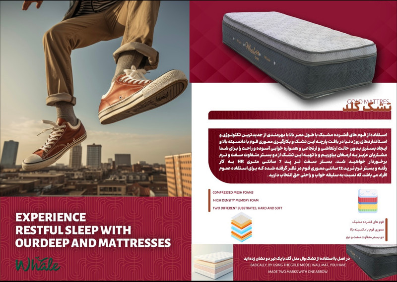فنر ۵ لایه پد فوم HR: حالت پذیری متعادل با پد فرم پدیک فول ارتوپدیک دانسیته بالا تحمل وزن تا 150 کیلو لایه ضد حساسیت دارای سوپاپ تهویه هوا ضمانت تعویض 7 سال